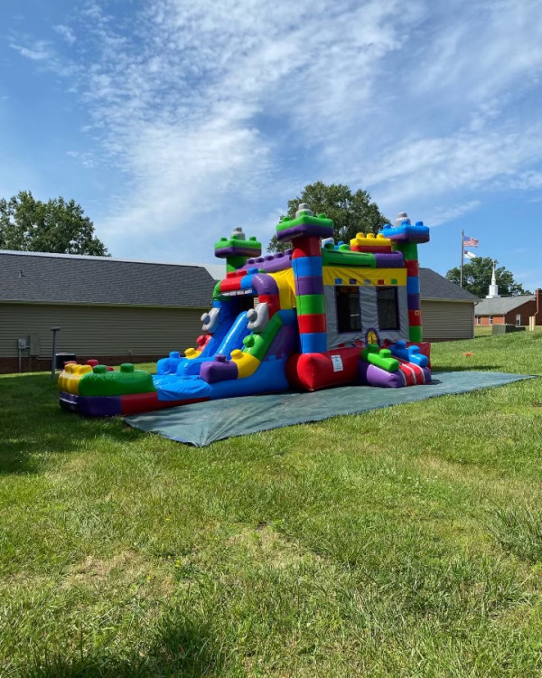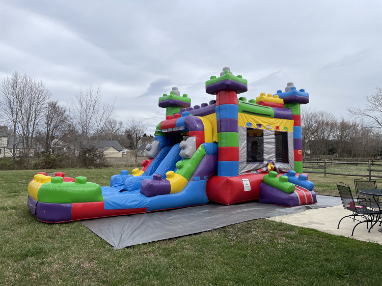 Mega Blocks Combo is the perfect unit that has it all. The unit features a large bouncer area, basketball hoop, and double lane slide with an inflated pool which can be used wet or dry. The unit was designed with mesh sides all around to have full visibility for parents and spectators. 15' wide x 30' long x 15' tall. Pool description- **Inflated Pool** -Inflated pools are described as not having a sitting body of water at the end of the slide. IP (Inflated pools discharge the water at the bottom through a drain)